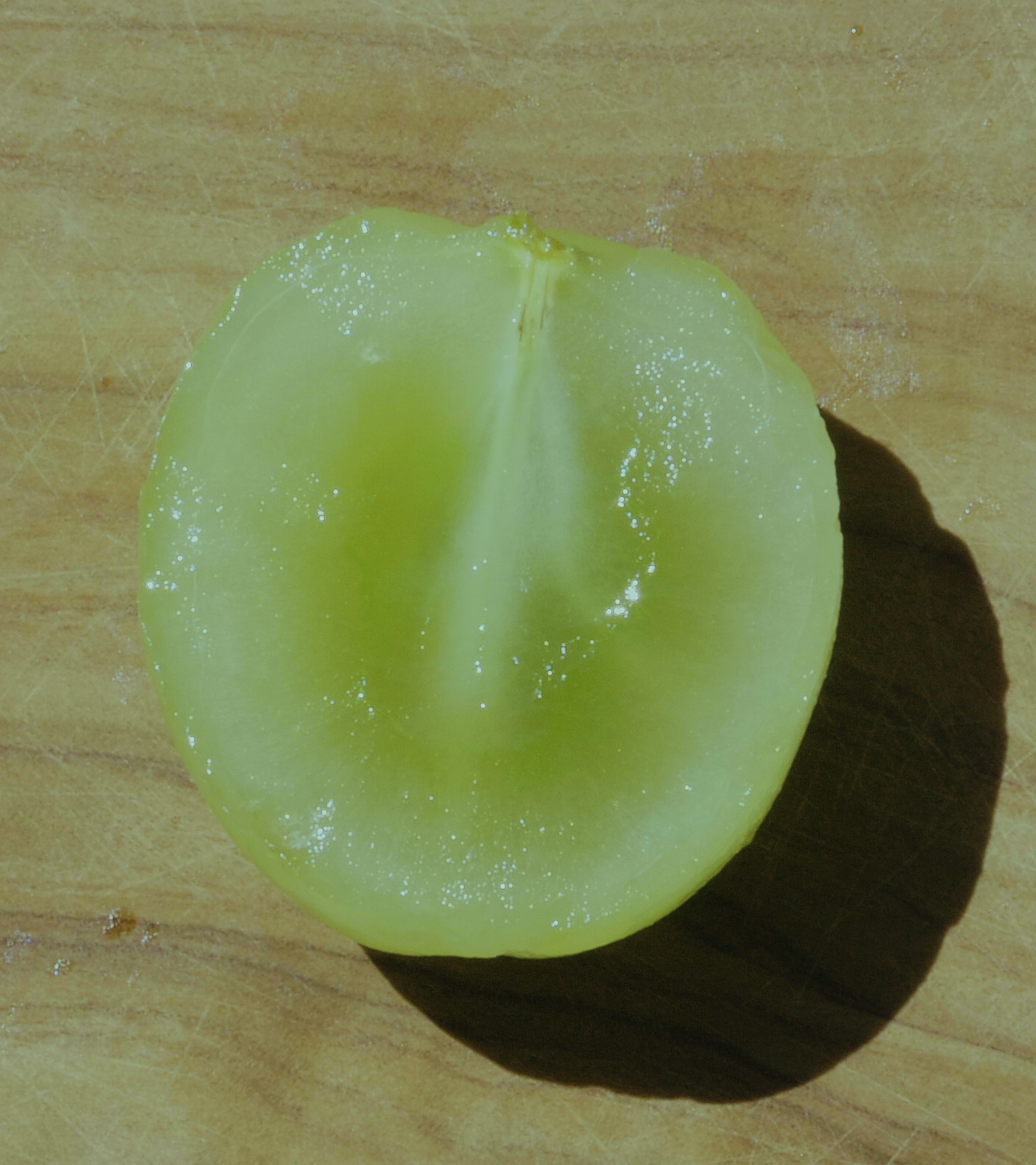 種無しぶどうを真っ二つに切ると出てくる、甘くて、食べやすくて、種がない、 人間の夢が叶った最高の果物、の跡の空洞。